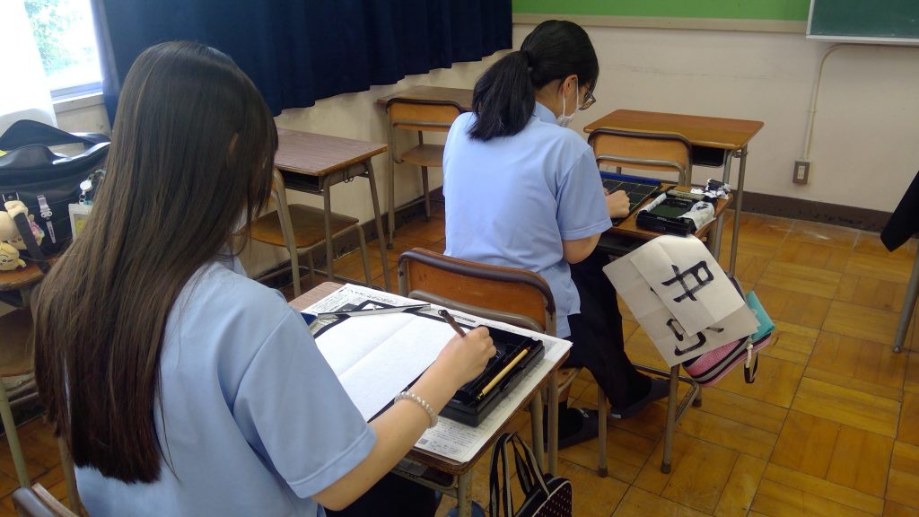 初心者から経験者まで、真面目に書道に取り組もうという生徒が集まっています。 書道の授業を教えていただいている講師の先生のご指導のもと、毎年9月の全国高等学校文化連盟(高文連)書道展に出品しています。